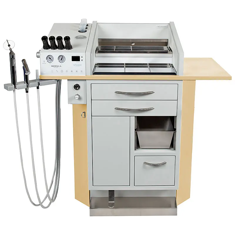 چیدمان ماژولها و جایگاه ابزار طوری است که با وجود محدودیت فضا، همچنان بتوانید سریع و راحت بین مراحل مختلف معاینه و درمان جابهجا شوید.
